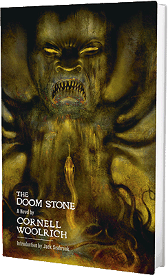 The Doom Stone was the last novel published during Woolrich’s life time, released only eight years before his death in 1968. It straddles the line between noir and the supernatural with a plot that resembles Woolrich’s earlier revenge thrillers The Bride Wore Black and Rendezvous in Black, but instead of a single protagonist, the novel’s instrument of vengeance is the mysterious stone, which reaches across time, altering the lives of saints and sinners alike.